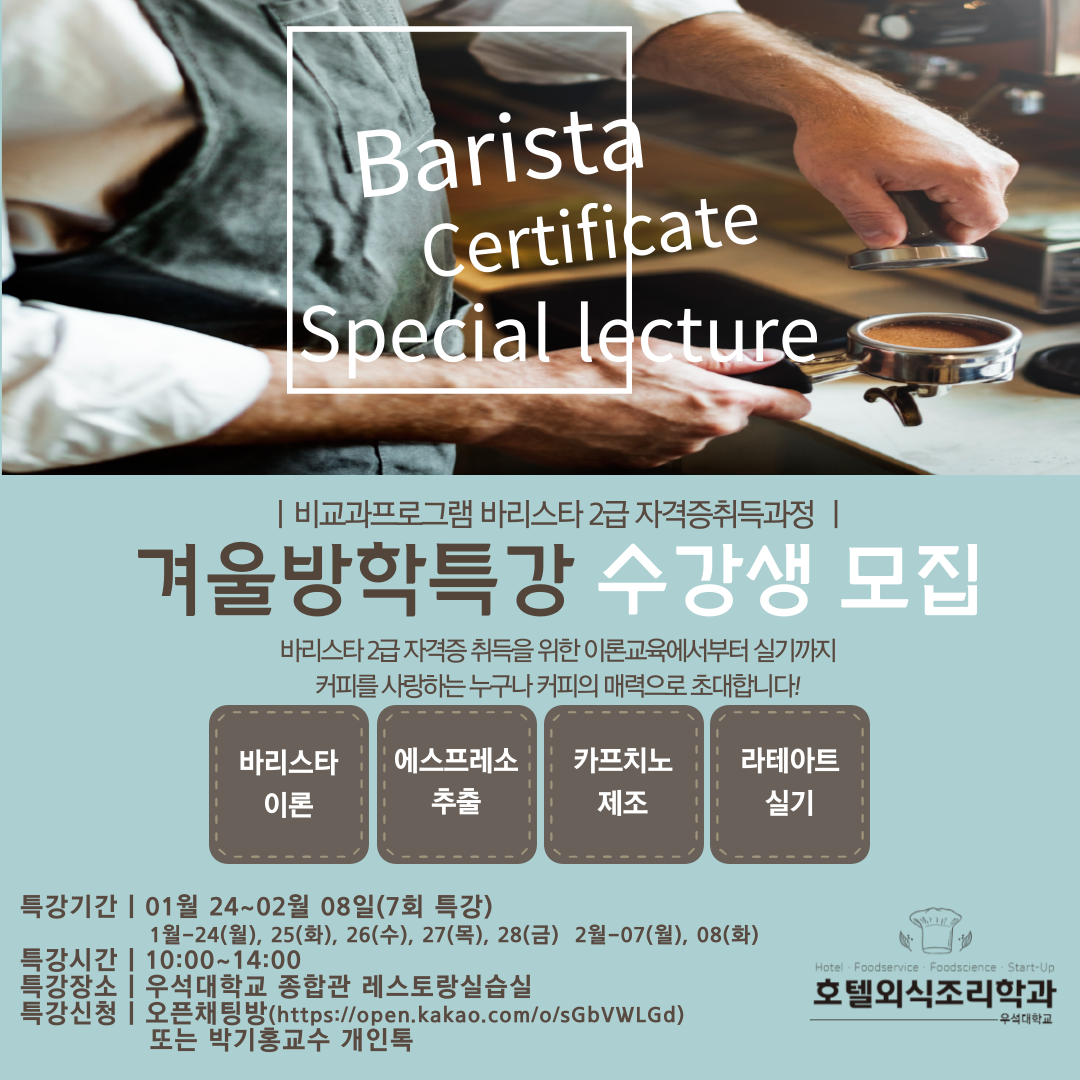 바리스타 2급 자격증 취득과정을 개설하였습니다.