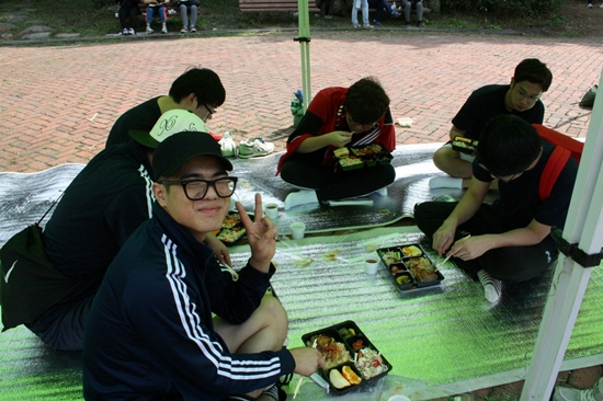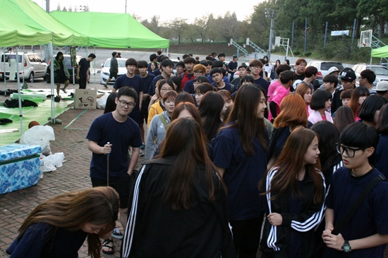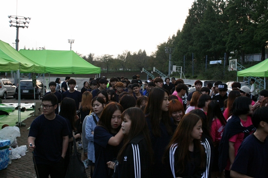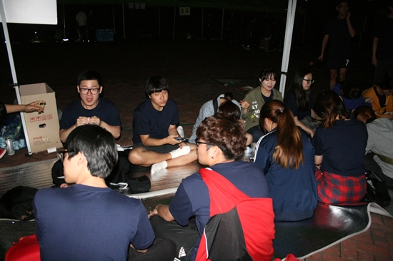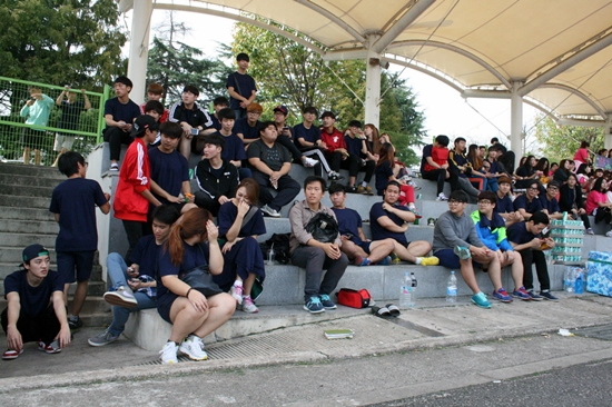 모든 경기가 끝나고 해가 저물때 쯤, 학생들이 옹기종기 모여 같은자리에 착석했습니다.